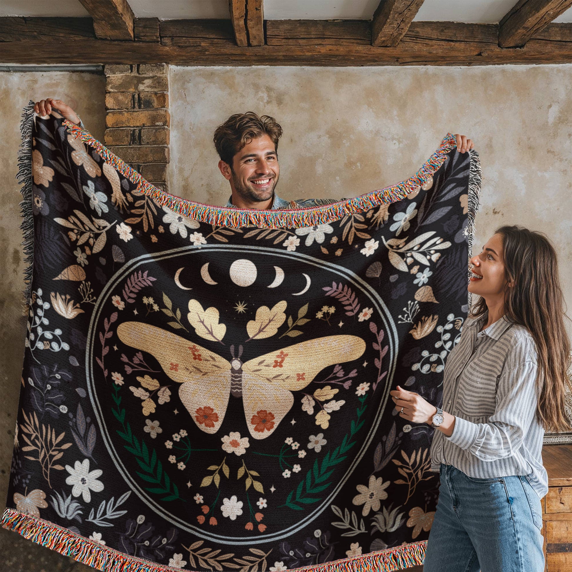 Mystic Moth Oversized Heirloom Woven Throw Blanket